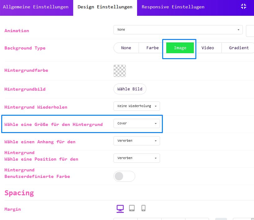 Mit dem Layout Manager können Sie Ihren Abschnitten ganz einfach Videohintergründe