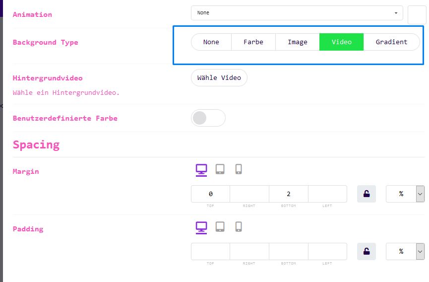 Mit dem Layout Manager können Sie Ihren Abschnitten ganz einfach Videohintergründe